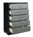 The Luxor Bedroom Collection is a sleek and modern addition to any bedroom. Made from birch and poplar solids and oak veneers, this collection exudes a stylish and contemporary feel.The collection includes a bed, a nightstand, a dresser, a mirror, and a chest. These pieces are upholstered in a combination of 3% faux leather, 70% PVC, and 27% Terylene, providing a durable and comfortable surface.The Luxor Bedroom Collection is available in black and white, allowing you to choose the color that best fits your personal style. Its sleek and modern design makes it a perfect choice for anyone looking to add a touch of contemporary style to their bedroom.