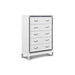 The Park Imperial Bedroom Collection offers a stylish and sophisticated look for your home. This collection includes a bed, nightstand, dresser, mirror, chest, and lingerie chest, all featuring a sleek pewter or white finish. The bed is upholstered in a luxurious blend of 80% faux leather and 20% cotton, adding a touch of comfort and elegance to your sleep space.The Park Imperial Bedroom Collection also boasts a number of practical , including full extension drawer glides, English/French dovetail drawers, and black felt top drawers. These make it easy to access and organize your belongings, while also protecting your clothes and other items from snags or damage.Overall, the Park Imperial Bedroom Collection is the perfect choice for anyone looking to add a touch of sophistication and practicality to their bedroom.