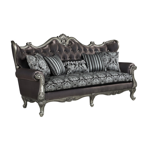 MARIELLA Loveseat, 70"L X 42"W X 38"H, 140lbs. Another set that nearly defies description! Gray velvet upholstery, white knit cushions, black wood ...