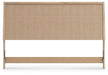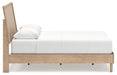 Clean-lined and contemporary—but far from stark—this king panel bed is a fresh style awakening. Pairing a light finish with replicated oak grain and textured beige details that replicate the look of cane, its mixed materials bring a naturally versatile vibe to your bedroom. Talk about style with added dimension. The bed's simplicity plays perfectly with the modern aesthetic and is the stuff dreams are made of.