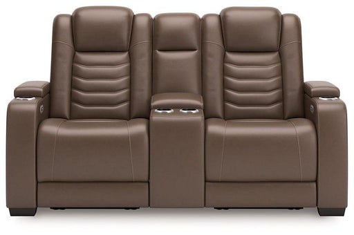 Talk about having it all. This power reclining loveseat with console entices with a luxe look and fabulous feel—and satisfies with high-end style a...